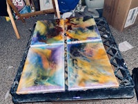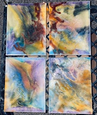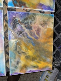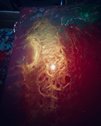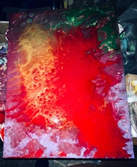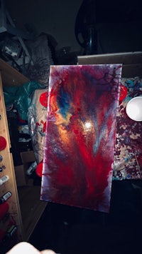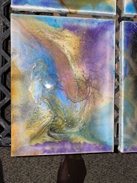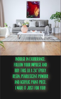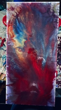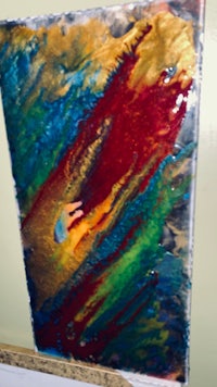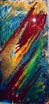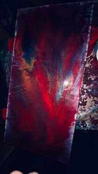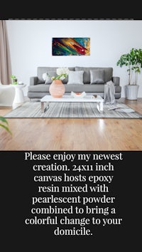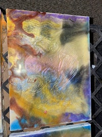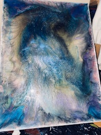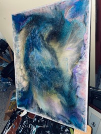Allow your imagination to take you away to other worlds and dimensions with this 18 inch by 24 inch epoxy resin mixed with pearlescent power and applied to canvas.